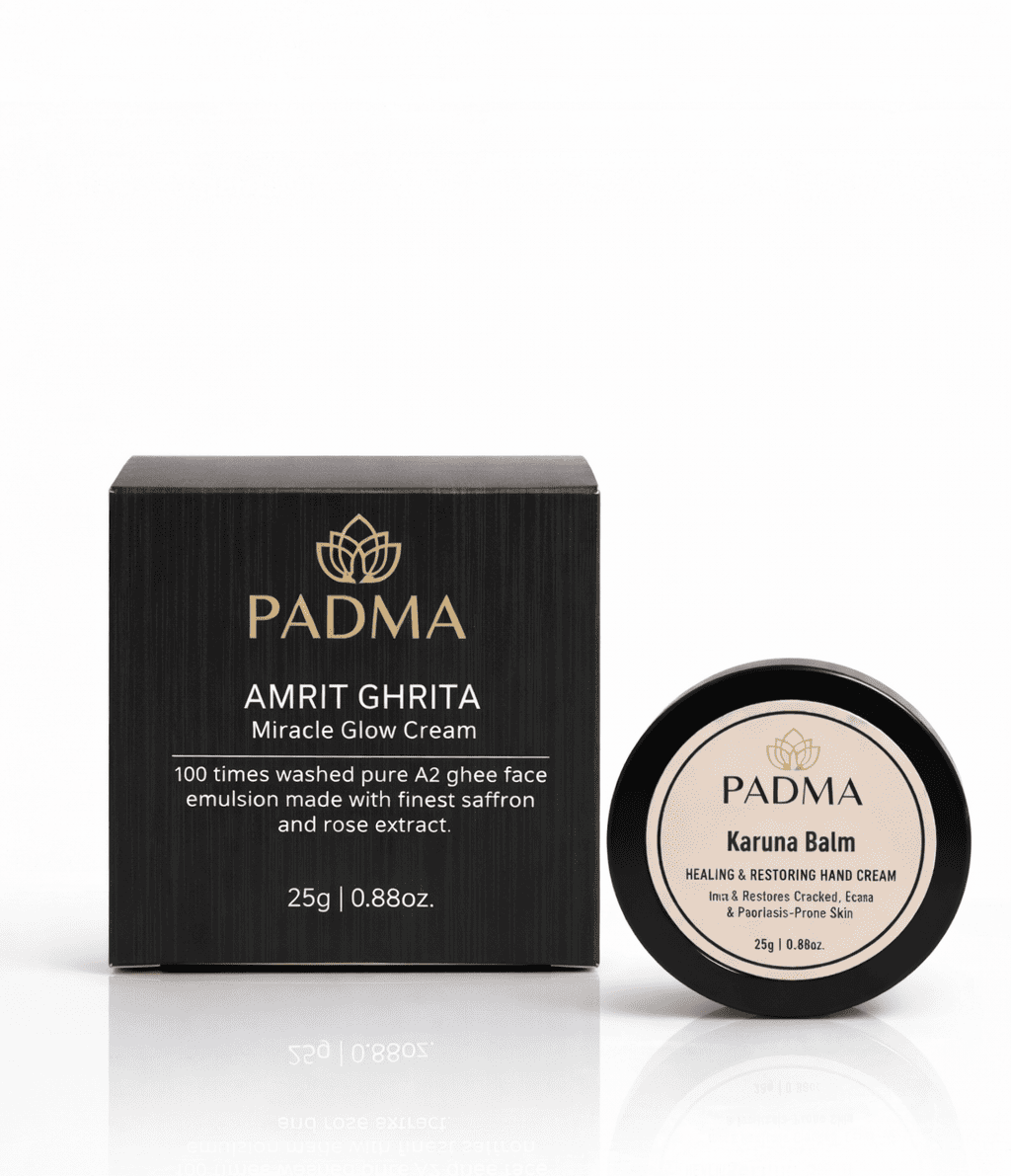 Padma’s Soothe & Glow Set brings together two skin-restoring essentials rooted in Ayurvedic tradition. Whether your skin needs deep nourishment, barrier repair, or calm from irritation, this duo offers intentional, effective care—without harsh chemicals.